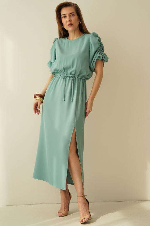 Elegancka kobieca sukienka z bufiastymi rękawkami Celine miętowa