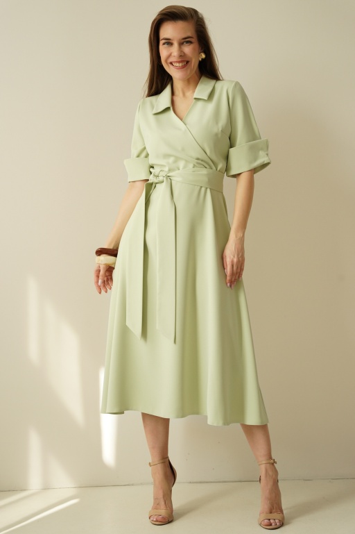Kobieca rozkloszowana sukienka z kołnierzykiem Victoria pistacja